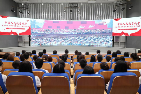 2025年9月3日上午9时,东北农业大学经济管理学院组织师生在成栋楼13楼报告厅、604会议室、720会议室、教学楼教室集体观看纪念中国人民抗日战争暨世界反法西斯战争胜利80周年大会,参加集体观看现场的有学院领导班子、教师代表、全体辅导员、青年学生代表及全体2025级新生。