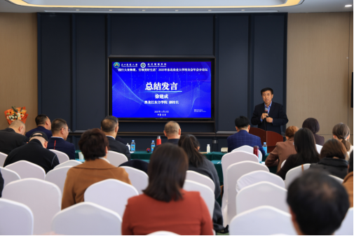 黑龙江东方学院副校长徐建成为本次论坛作总结发言。他通过系统对比我国近30年的粮食产量、耕地面积与粮食消耗量的数据,提出技术创新是驱动粮食产量稳步提升的核心动力,而多元化食物供给体系提升了我国食物供应链的韧性,从而应对外部环境的不稳定性和不确定性。他指出,应构筑更加紧密的校友和母校发展共同体,实现资源共享、优势互补、共赢发展,提高粮食综合生产能力和多元化食物供给体系,保障国家粮食安全,牢牢端稳中国饭碗。