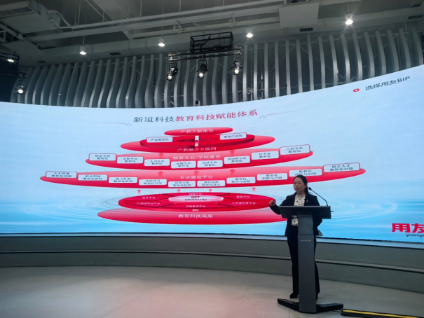 吴雪凌作为管理会计师、新道科技市场总监及多所高校企业导师,从用友集团37年发展历程出发,阐述其从本土财务软件厂商成长为全球企业数智化服务商的战略路径。她指出,用友率先提出的“数智化”理念已融入国家政策语境,其构建的BIP商业创新平台正逐步替代传统ERP系统,实现从“流程驱动”到“数据+AI原生”的跨越。通过展示用友BIP在十大云服务领域的应用,以及助力大型企业实现SAP、Oracle等系统的国产化替代案例,吴雪凌展现了中国企业软件在全球竞争中的实力。作为新道科技的代表,她特别强调数智化人才是转型的核心动力,并呼吁大学生关注ERP实施、云产品经理、财务数智化专员等新兴岗位,提升数据分析、系统操作等硬技能,同时培养用户思维与创新意识。